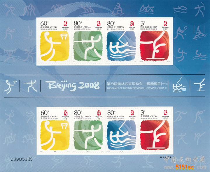 【藏品名稱】《第29屆奧林匹克運動會----運動項目(一)》紀念郵票1套4枚。詳情如下: