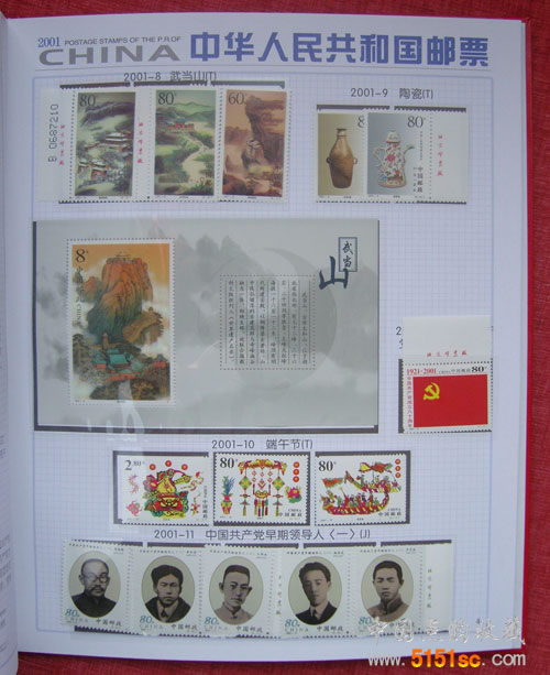 包含2001年國家郵政局發行的全部郵票和小型張,不含本票、評選票。