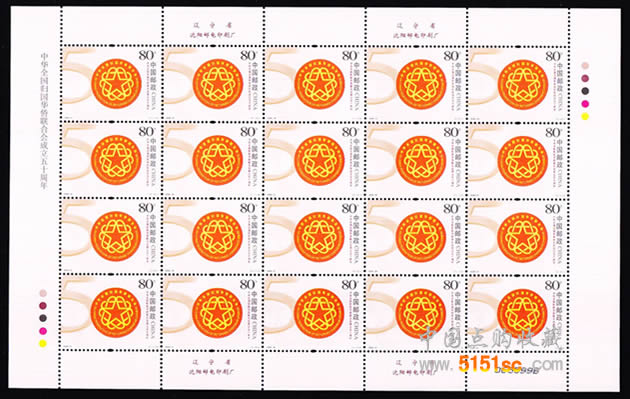 2006-21 中華全國歸國華僑聯(lián)合會(huì)成立五十周年大版票,1版20套票。
