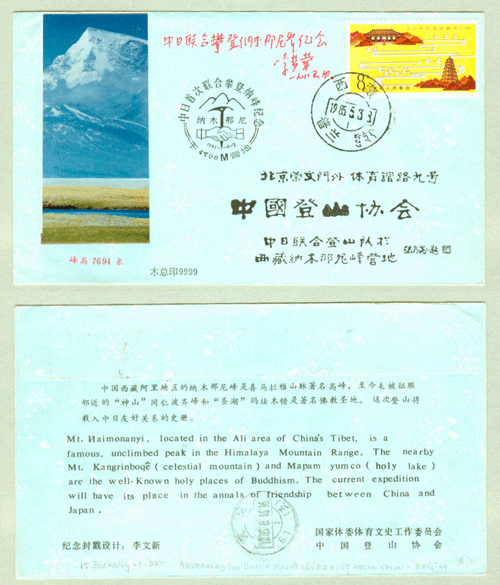 【實拍】1985年中日首次聯合攀登納峰紀念封