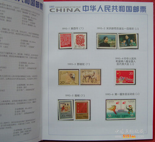 包含1993年國家郵政局發行的全部郵票和小型張。 不含本票、評選票。