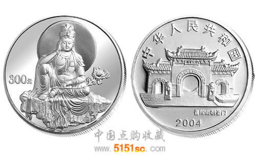 該套紀念幣正面圖案均為普陀山朝圣門,并刊國名、年號及“普陀山朝圣門”中文字樣。