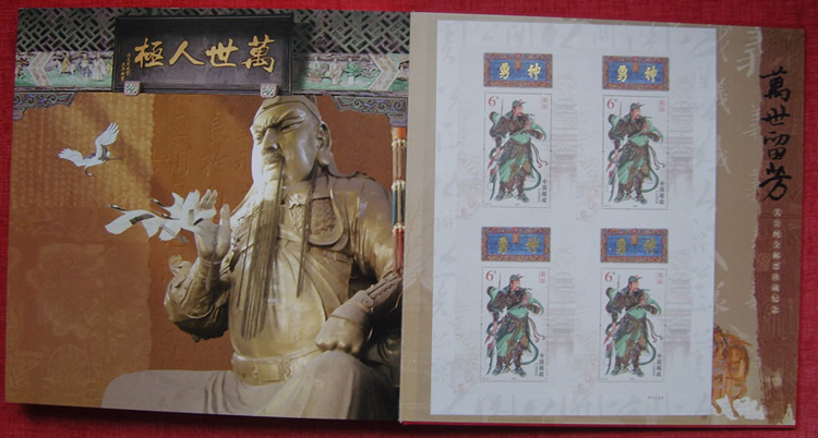 為配合《關(guān)公》郵票發(fā)行,總公司特制作純金郵票珍藏禮品冊(cè)一冊(cè)。