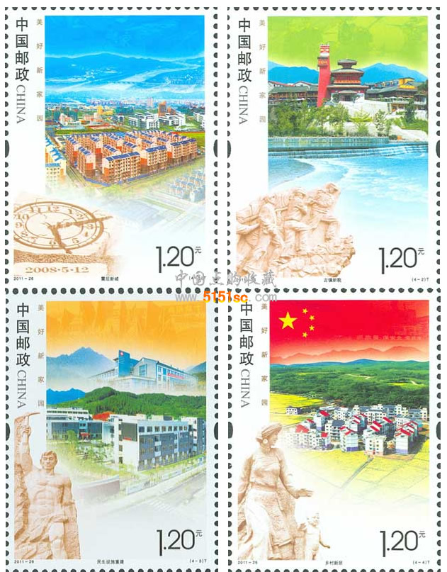 中國郵政定于2011年10月13日發行《美好新家園》特種郵票1套4枚,小型張1枚。