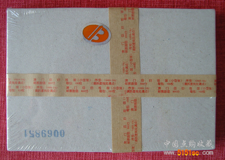 小型張:澳門回歸祖國(guó) 800分 2109.19 萬枚