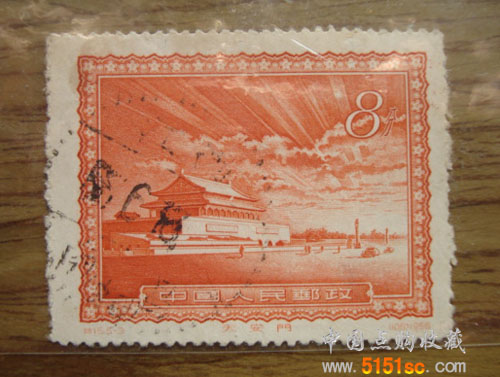 《天安門放光芒》郵票是中國(guó)珍郵中最具收藏價(jià)值的郵票之一,在以往的拍賣會(huì)中都拍出了許多天價(jià),特別是新票。《天安門放光芒》被郵迷稱為“放光芒”,這張郵票是1956年發(fā)行的《首都名勝》特種郵票中的一枚。
