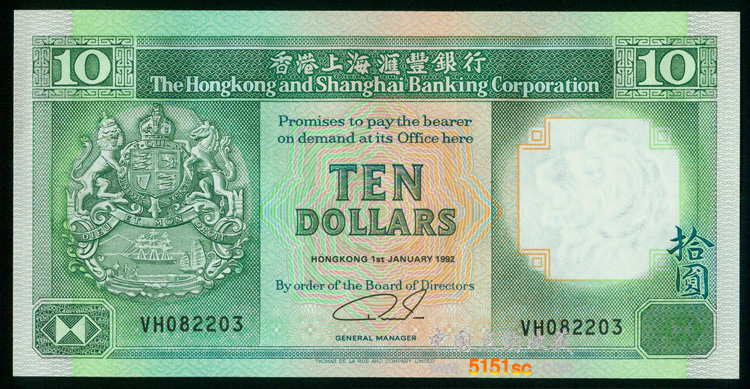 【藏品名稱】香港上海匯豐銀行10元紀念鈔