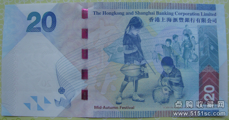 【藏品名稱】香港上海匯豐銀行—吉慶佳節中秋(20元)紀念鈔(中秋紀念鈔)【藏品品相】全新【圖片鑒賞】