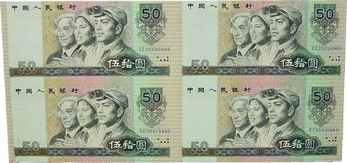 90版50元四連體發(fā)行之時(shí),連體鈔板塊少為人知,投資壓貨的人更是少之又少,雖無(wú)裁切,但發(fā)行早必然導(dǎo)致自然(禮品)消耗較大。2007年以前,90版50元四連體價(jià)格高于80版50元四連體,可見(jiàn)收藏者對(duì)此品種比較認(rèn)可。長(zhǎng)線看好。