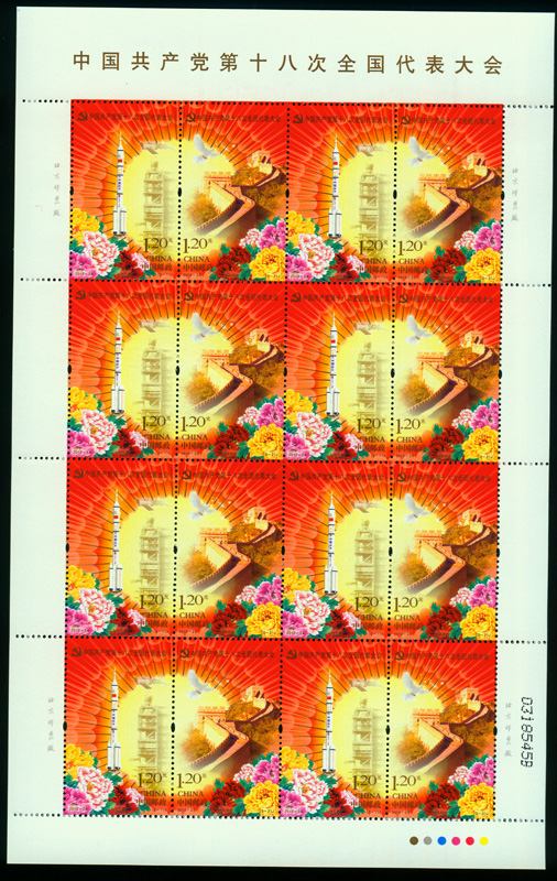 【商品名稱】2012-26 中國共產黨第十八次全國代表大會(大版)【商品描述】為慶祝中國共產黨第十八次全國代表大會召開,中國郵政當天發行《中國共產黨第十八次全國代表大會》紀念郵票1套2枚和小型張1枚,該套郵票分別為《科學發展》和《繼往開來》,小型張為《歡慶》。同時推出特別紀念封、首日封等郵品。